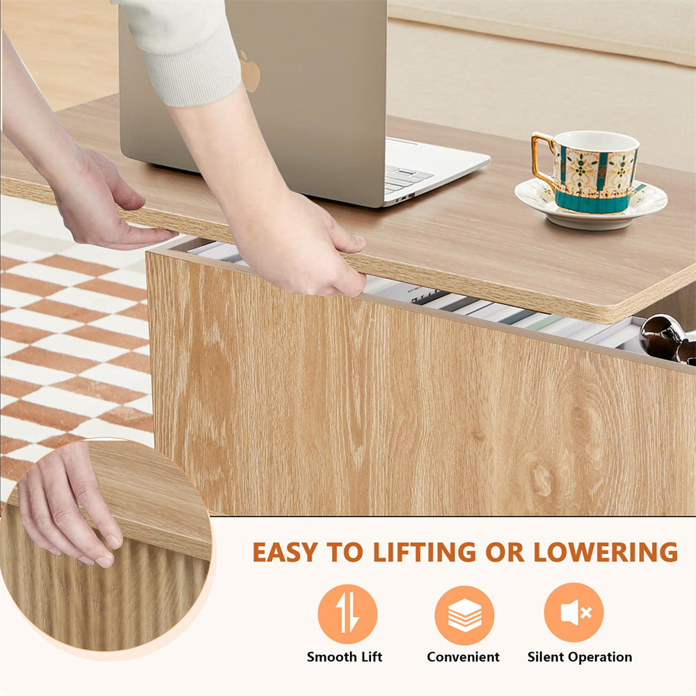 Modern Design: The lift tabletop coffee table is fabricated through a special technology, the fluted panel design is unique and elegant. The wood grain table top creates the natural beauty of a rustic coffee table, mid-century design makes the coffee table more modern. The rounded corners also softens the look of the streamlined frame and provides an environment safe for little ones.