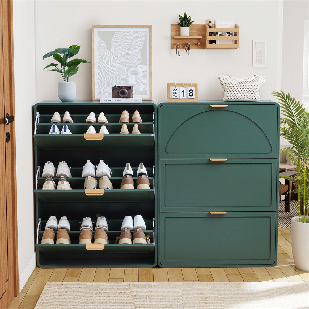 Slim Profile and Space Saver - This is an excellent shoe storage, this shoe rack opened so much space in the entryway and hides all the mess. Doesn’t look like a shoe cabinet, looks like any regular table. It is the perfect place to put your shoes and purse and perfumes for when you're heading out the door. Slender and narrow fits great for entry way or mud room,hallway and it’s barely noticeable.