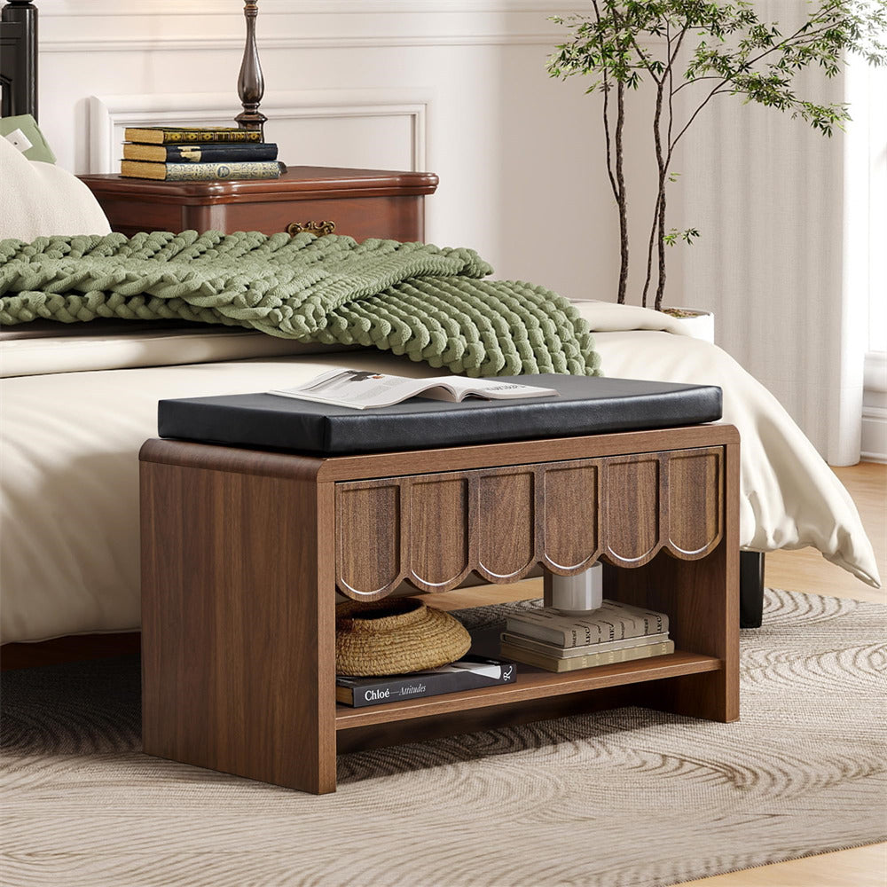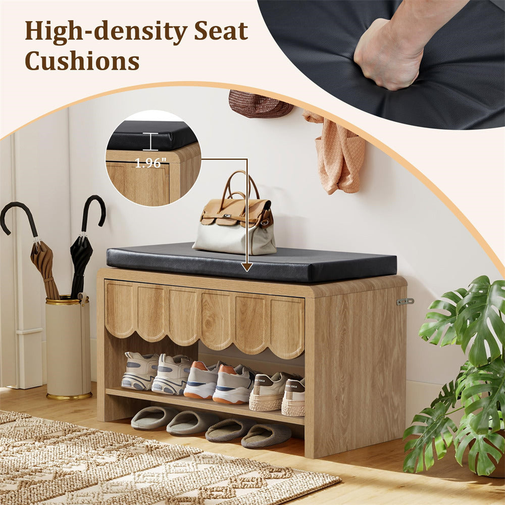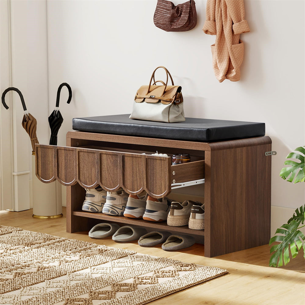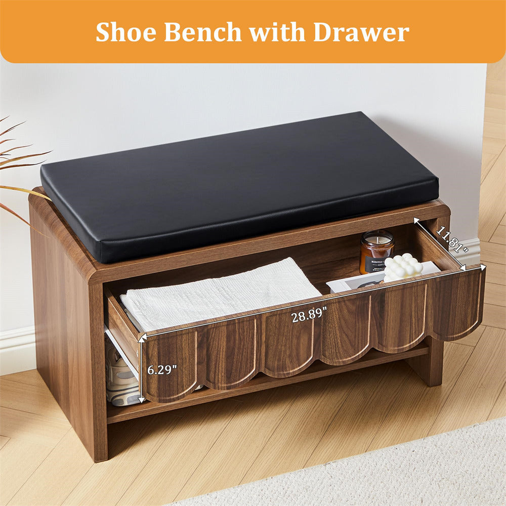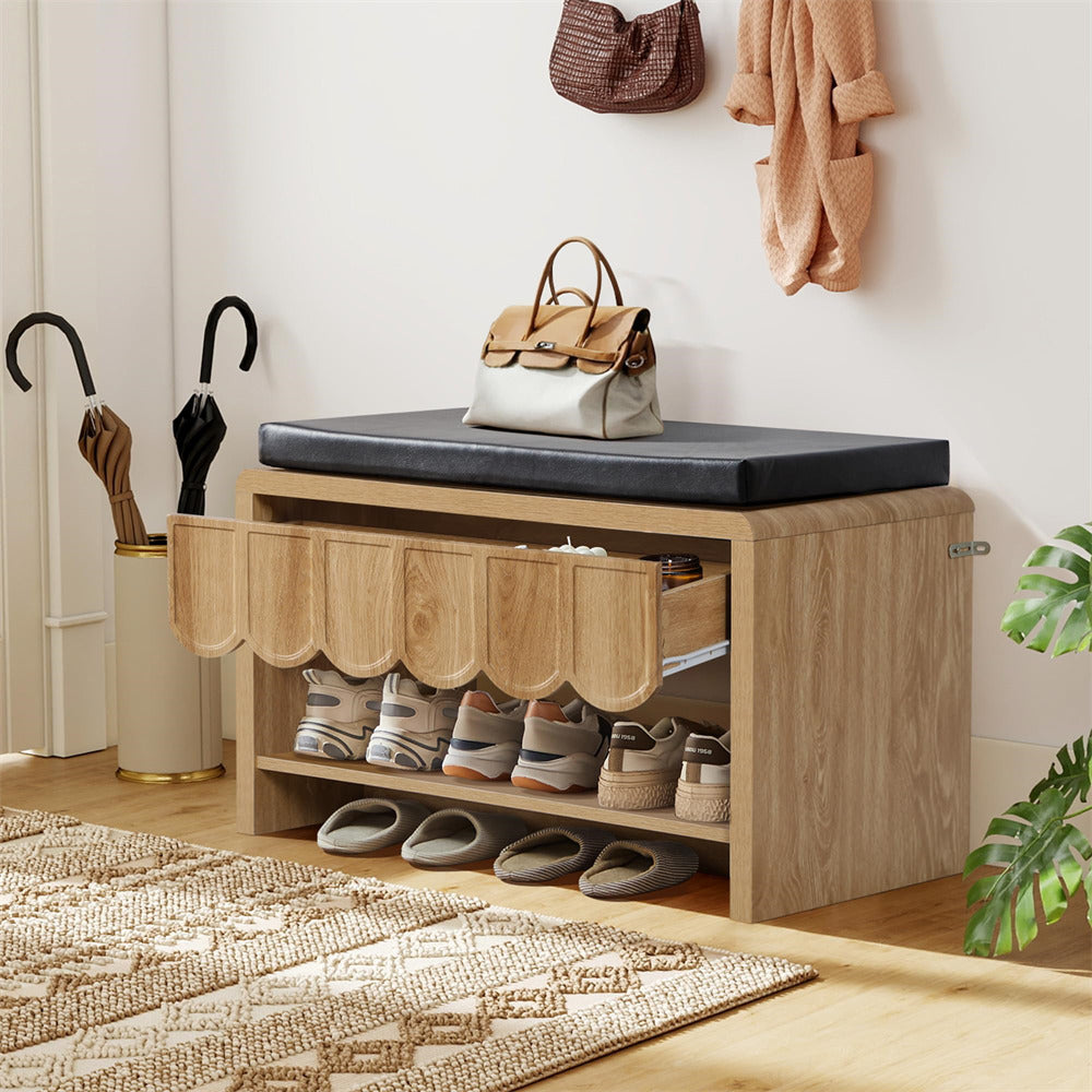 Shoe Cabinet Storage Bench with Wave Panel Drawer and Cushion